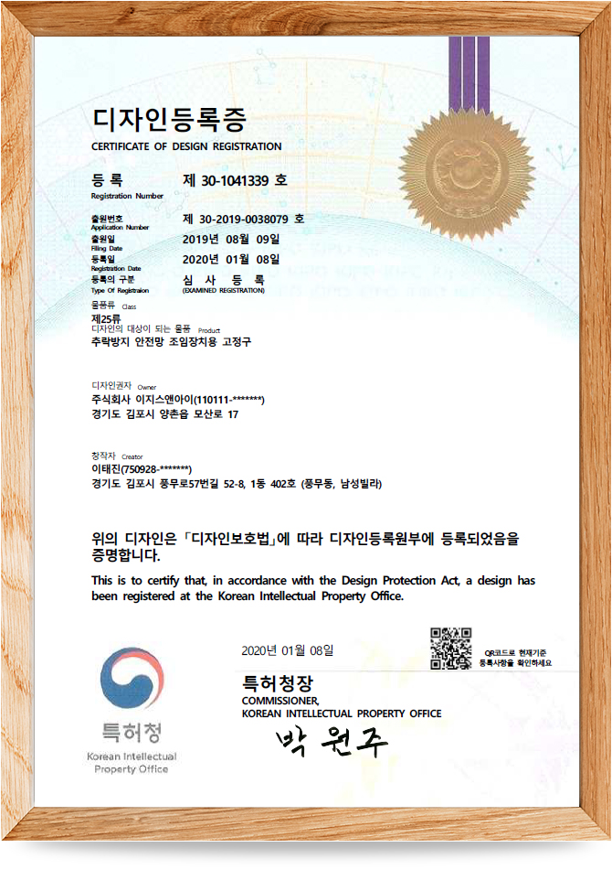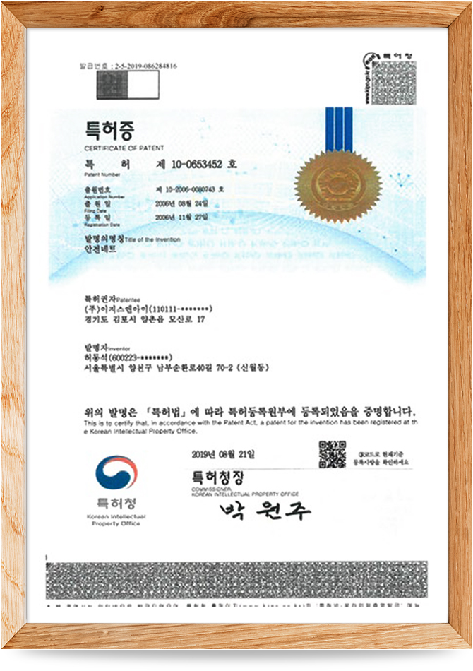 안전네트 특허증