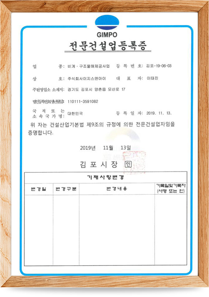 전문건설업등록증