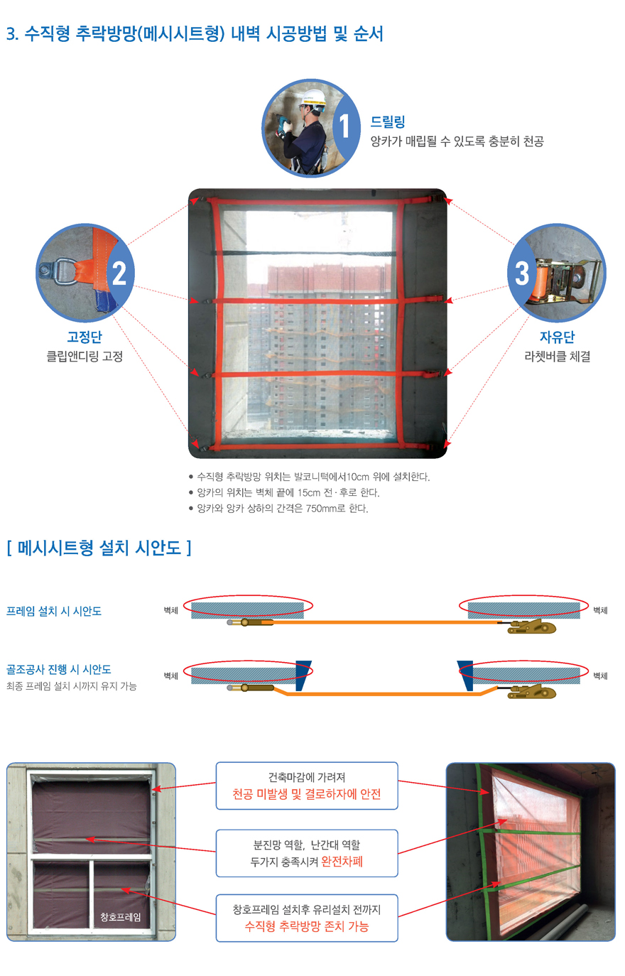 수직형 추락방망(메시시트형)